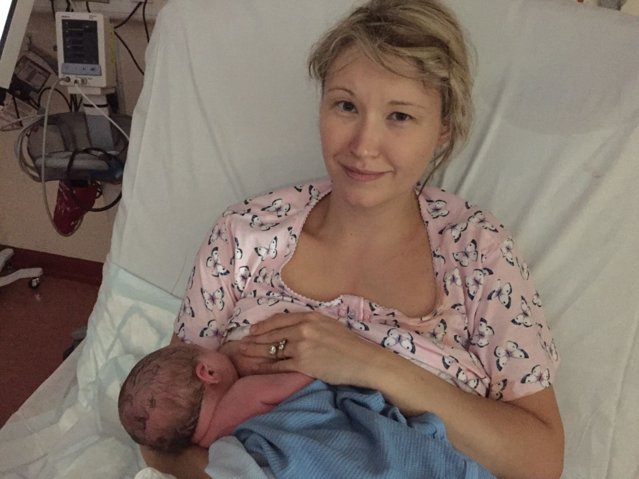 I continued to use the pool with gas and air throughout. I set up battery candles, had dim lights, aromatherapy oils on a tissue and the music on that I had practised relaxation to in the background. As early morning came round about 2.30am, I did request extra pain relief. In this case I knew my options and was confident to ask for what I wanted. I asked for half a dose of diamorphine instead of a full dose, and that was definitely enough for me to take the edge off the contractions. I knew from research that drugs such as these are powerful, and can also affect the baby. It did make me sleepy, so I was able to rest in between contractions for a while. I then was able to get back in the pool after a few hours and just breath my way through using visualisation as I knew the end was in sight. At 8.35am in the morning, our little water baby was born. I wasn’t even aware that she was out. I had done a lot of perineal massage 6 weeks prior, so that was the easy bit! After just 15 minutes of her being born, she successfully latched on and had her first breastfeed. I did have a tiny tear, which the midwives sorted with little dissolvable stitches. Nothing was painful and I hardly noticed them doing anything at all.